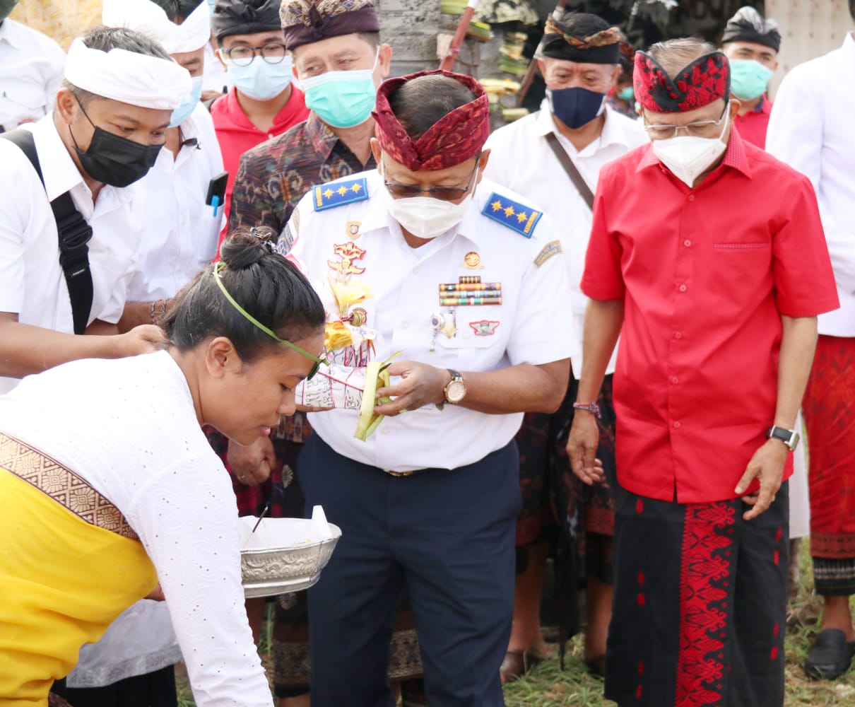 Gubernur Bali I Wayan Koster meletakan batu pertama Pembangunan Pelabuhan Penyebrangan Bias Munjul di Nusa Ceningan tepat pada hari suci Purnama Kepitu/ist Selasa, (29/12/2020)/ist |