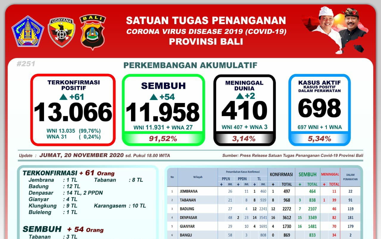 Denpasar – Provinsi Bali ini mencatat pertambahan kasus sembuh dari