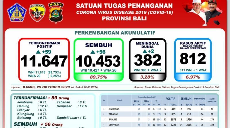 Denpasar – Pandemi Covid-19 di Provinsi Bali mencatat pertambahan kasus