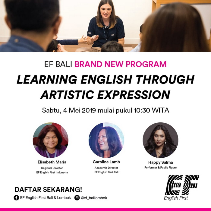 Dengan mengkolaborasikan antara komunikasi Bahasa Inggris dengan Seni, secara resmi inovasi ini akan diperkenalkan melalui sebuah acara talk show bertajuk, ”Learning English Through Artistic Expression” yang bertempat di EF Bali Hayam Wuruk pada 4 Mei 2019.
