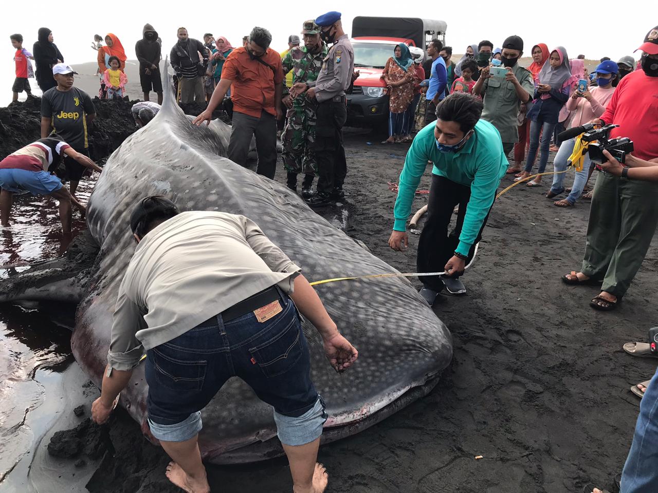 Jember –Seekor hiu paus dilaporkan terdampar dalam kondisi mati di Pantai Paseban, Desa Paseban, Kecamatan Kencong, Kabupaten Jember, Jawa Timur, Minggu (30/8), pukul 06.00. WIB