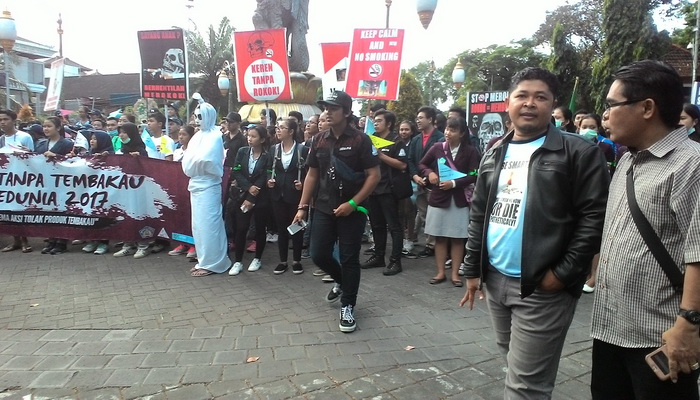 DENPASAR – Puluhan mahasiswa dan pelajar di Bali menggelar aksi damai turun ke jalan menolak produk tembakau dan stop iklan rokok bertepatan dengan Hari Tanpa Tembakau se-Dunia.