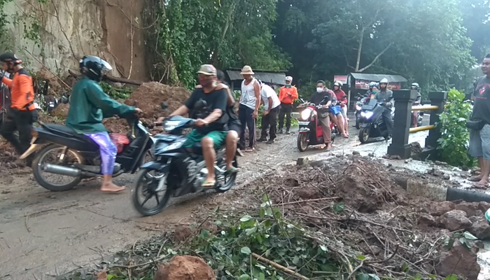 Mangupura – Setelah diguyur hujan deras sejak dinihari mengakibatkan terjadinya longsor di Desa Sempidi Mengwi Kabupaten Badung Bali sehingga akses jalan menghubungkan Desa Sading tertutup material longsor.