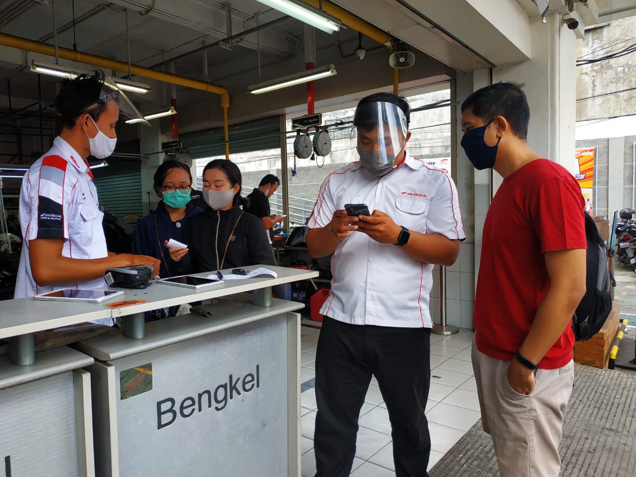 Customer datang ke ahass dan memperlihatkan email E-Vouchet ke service advisor.