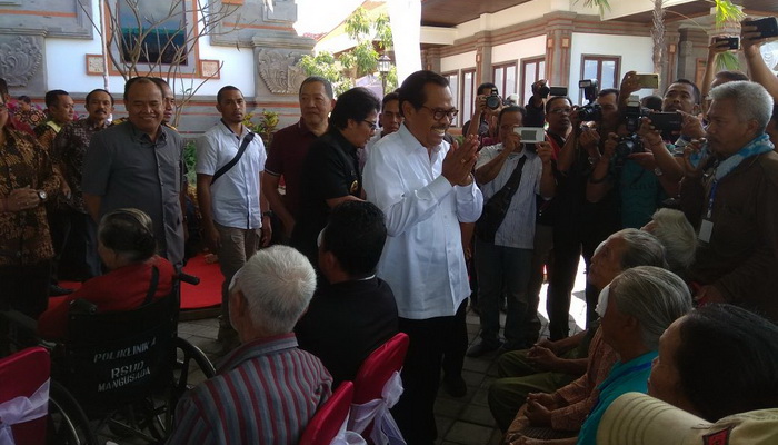 | Jaksa Agung RI HM Prasetyo menyapa warga lansia yang akan menjalani operasi katarak dalam bakti sosial Kejaksaan Tinggi Bali yang digelar di Kantor Kejaksaan Negeri Badung |