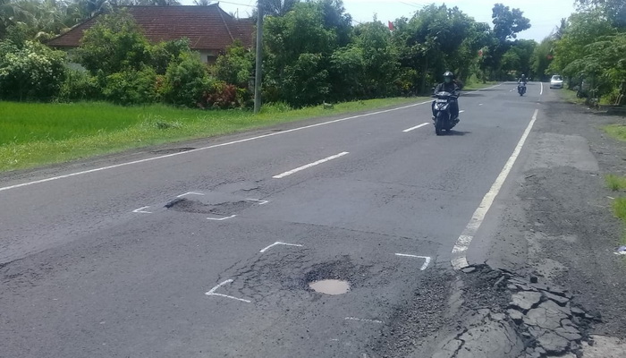 JEMBRANA – Ketua Komisi III DPRD Bali I Nengah Tamba meminta truk yang melebihi tonase ditertibkan karena dianggap sebagai penyebab rusaknya ruas jalan nasional Denpasar-Gilimanuk. Jalan berlubang berukuran yang cukup besar menjadi momok menakutkan bagi pengendara sepeda motor, terutama pada malam hari.