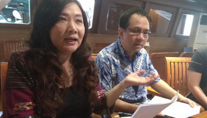 | Direktur Marketing Sea Safari Cruise Eva Tanudjaja didampingi Direktur Utama Djainuddin meberikan keterangan pers. |