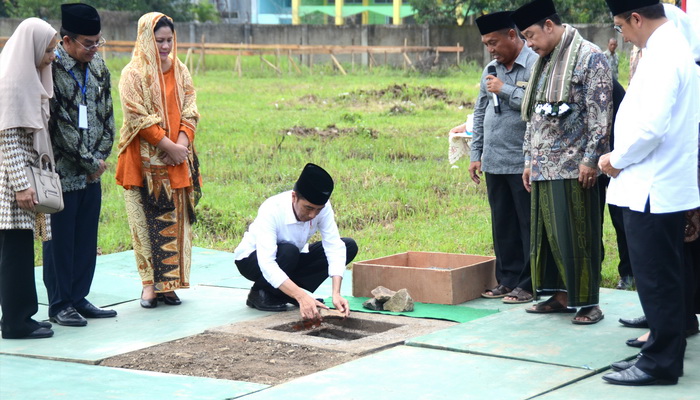 Presiden Joko Widodo meletakkan batu pertama pembangunan GOR di Pesantren Buntet Cirebon (foto:setkab) |