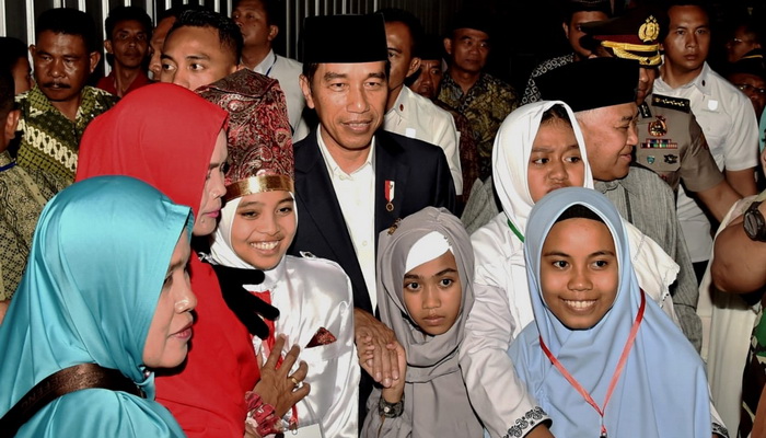 | Presiden Jokowi bersama santri Pondok Modern Internasional (PMI) Dea Malela, Sumbawa Besar, NTB/foto:biro pers setpres |