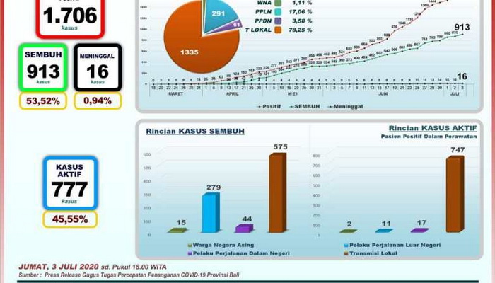 Transmisi lokal dan 1 orang WNA,” jelas Ketua Gugus Tugas Percepatan Penanganan (GTPP) Dewa Made Indra yang juga Sekdaprov Bali ini di Denpasar, Jumat 2 Juli 2020.