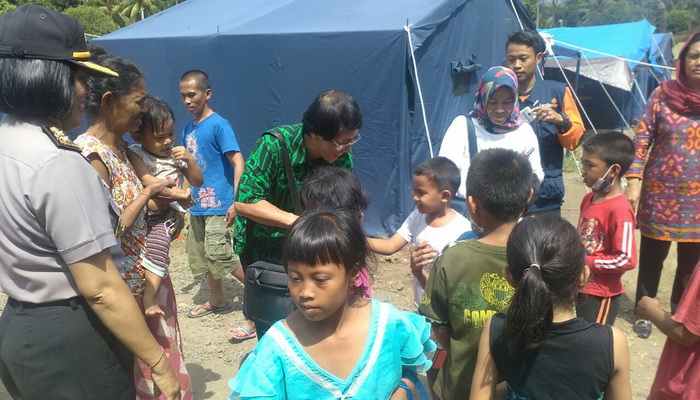 DENPASAR – Ketua Komisi Nasional Perlindungan Anak, Dr. Seto Mulyadi, akrab disapa Kak Seto (66) bersama Polwan Polda Bali mengunjungi lokasi Pos Pengungsian Desa Ulakan Manggis Kabupaten Karangasem, Senin (2/10/2017).