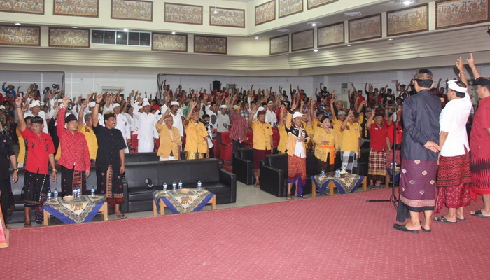 Berlokasi di Gedung UKM Center Karangasem, ribuan warga nampak khidmat mendengarkan paparan visi, misi dan program kerja Koster-Ace. Mereka rela berdesak-desakan hingga ke luar gedung untuk dapat mendengarkan konsep Koster-Ace yang diberi tema Nangun Sat Kerthi Loka Bali.