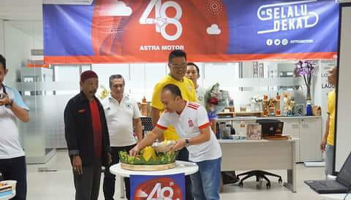 Pemotongan tumpeng memperingati HUT Astra Motor ke-48 di Astra Motor Bali Jl Cokoraminoto, Denpasar |