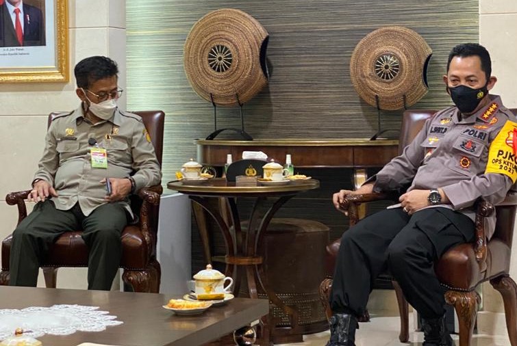 Menteri Pertanian Syahrul Yasin Limpo bersama jajaran di Ruang Rapat Kapolri,