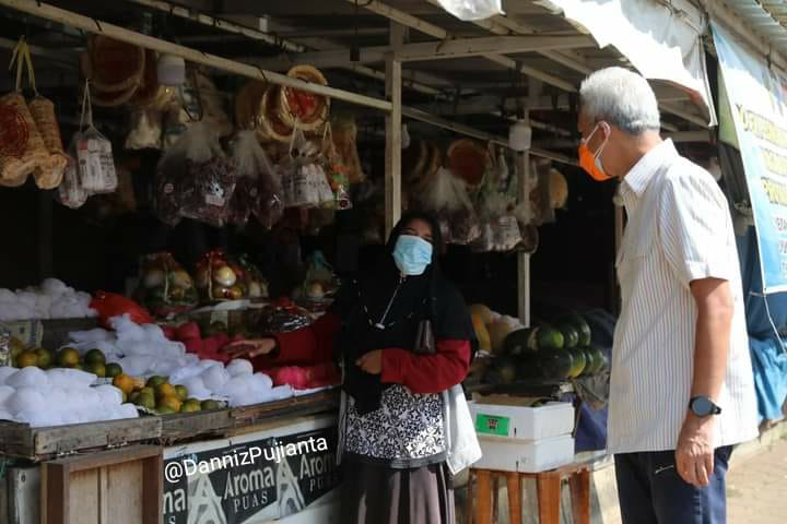 Saat Ganjar berjalan melihat kondisisi pasar, Ganjar melihat Sumiyati yang