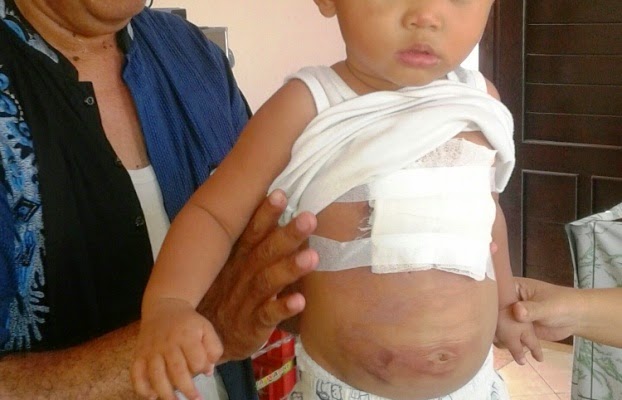 Luka balita usia 15 bulan ini cukup serius, sehingga harus mendapatkan perawatan itensif di RSUD Negara, Bali.