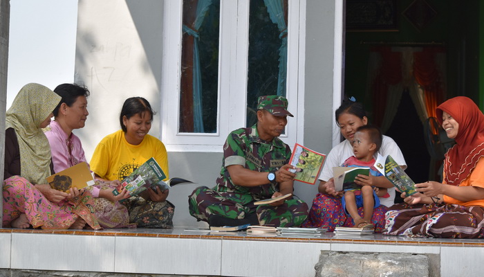 DEMAK– Tekad besar tertanam dalam diri Pelda Jumbadi Babinsa Koramil 02/Bonang Kodim 0716/Demak agar minat baca tumbuh di masyarakat sehingga bak perpustaan keliling blusukan membagikan buku-buku.