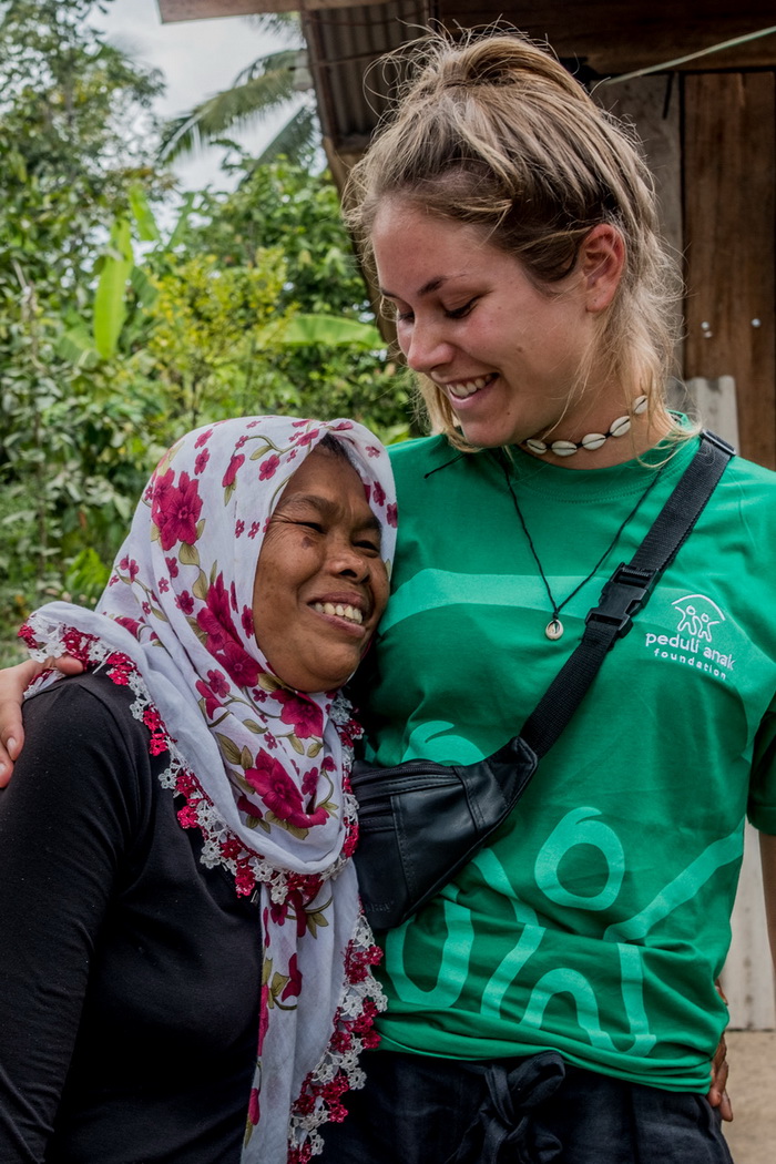 Dengan tim Peduli Anak, saya berkendara dari desa ke desa mengantarkan barang-barang seperti makanan, minuman, vitamin, kasur, dan lain-lain di tempat yang paling dibutuhkan.