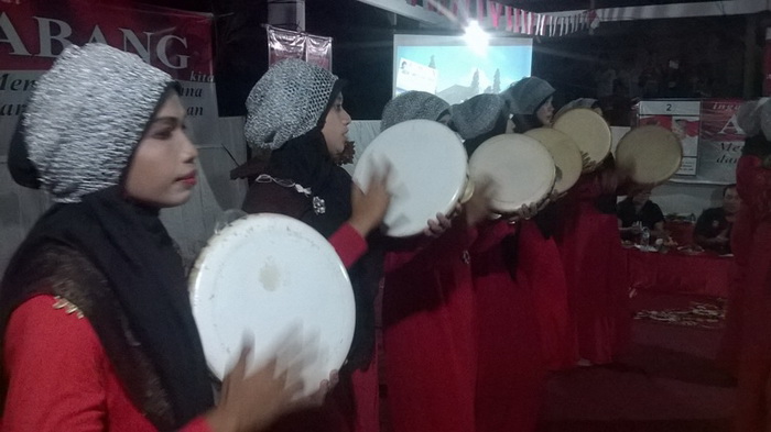 Kabarnusa.com- Warga Desa Air Kuning menyambut suka cita kedatangan pasangan calon Bupati dan Wakil Bupati, I Putu Artha-Made Kembang Hartawan (ABANG) dengan kesenian qasidah.