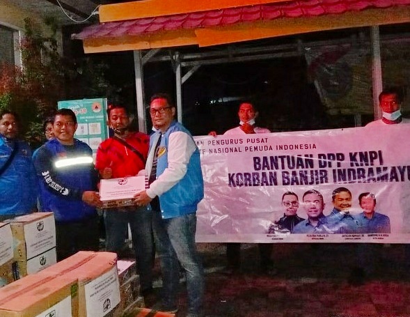Selain mendistribusikan bantuan dalam bentuk barang, KNPI Indramayu