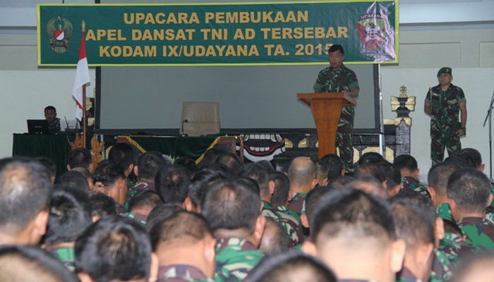 Pangdam Torry menegaskan itu saat membuka Apel Dansat tersebar Tahun 2015 pada Kamis, 18 Juni 2015 bertempat di Aula Ngurah Rai Rindam IX/Udayana, Kediri Tabanan JUmat (19/6/2015).