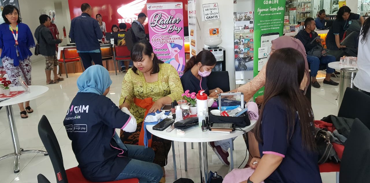 Program “Ladies Day” diperuntukan buat konsumen wanita dengan syarat melakukan booking service melalui web “asmobooking.com” dan selama menunggu selesai service konsumen akan menikmati layanan massage dan meni/pedicure/hair styling.