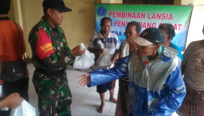 Kegiatan sebagai bentuk perhatian kepada para Lansia di Kecamatan Tampaksiring yang dilakukan Koramil 1616 – 03/Tampaksiring. Sertu I Wayan Ariana ikut berpartisipasi membantu pemberian Sembako kepada para Lansia dan acara tersebut di prakarsai oleh perbekel setempat.