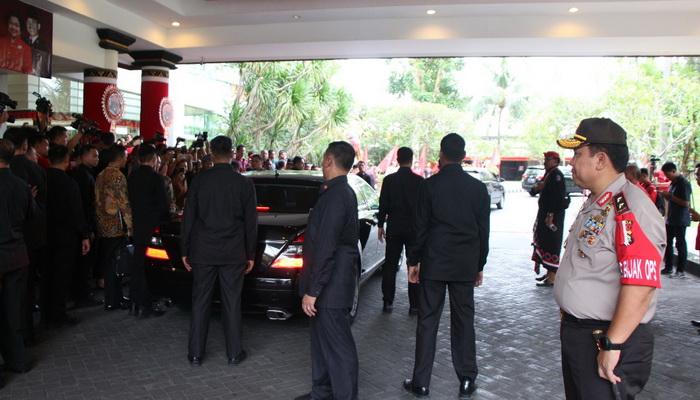 Kapolda Bali Irjen Pol. Dr. Petrus R. Golose mengecek langsung pengamanan yang dilaksanakan oleh jajaran seperti saat pelaksanaan rakernas III PDI Perjuangan, yang dihadiri Presiden Jokowi di Hotel Grand Bali Beach (GBB) Sanur, Denpasar, Jumat (23/2/2018).