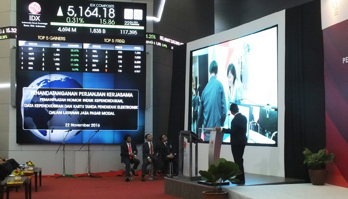 JAKARTA – Sebanyak 100 pelaku industri Pasar Modal Indonesia, Selasa (22/11) melakukan penandatanganan Perjanjian Kerja Sama (PKS) dengan Direktorat Jenderal Kependudukan dan Pencatatan Sipil (Ditjen Dukcapil), Kementerian Dalam Negeri terkait Pemanfaatan Nomor Induk Kependudukan, Data Kependudukan dan Kartu Tanda Penduduk Elektronik (KTP-el) dalam layanan jasa pasar modal.