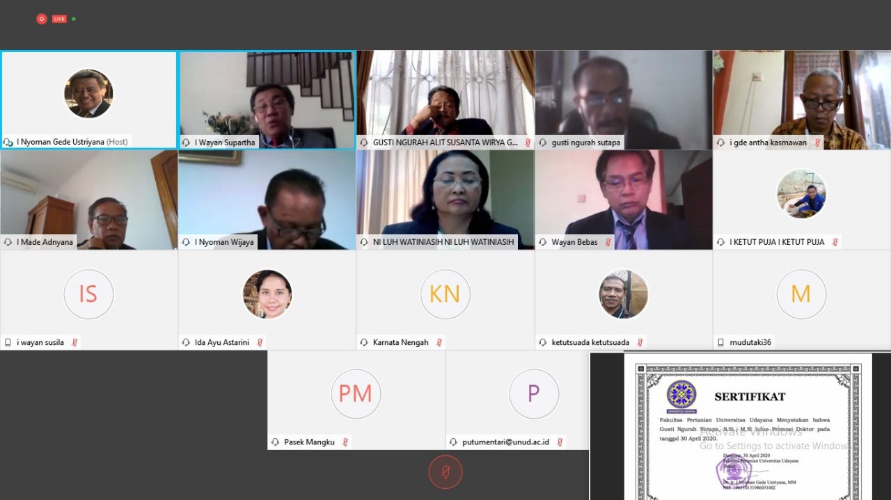 “Sehinga tikus betina yang dikawini tikus jantan mandul tidak akan melahirkan anak,” kata Sutapa usai mempertahankan hasil temuanya dalam ujian terbuka online melalui aplikasi webex.com yang diselenggarakan oleh Program Studi Ilmu Pertanian, Fakultas Pertanian, Unud.