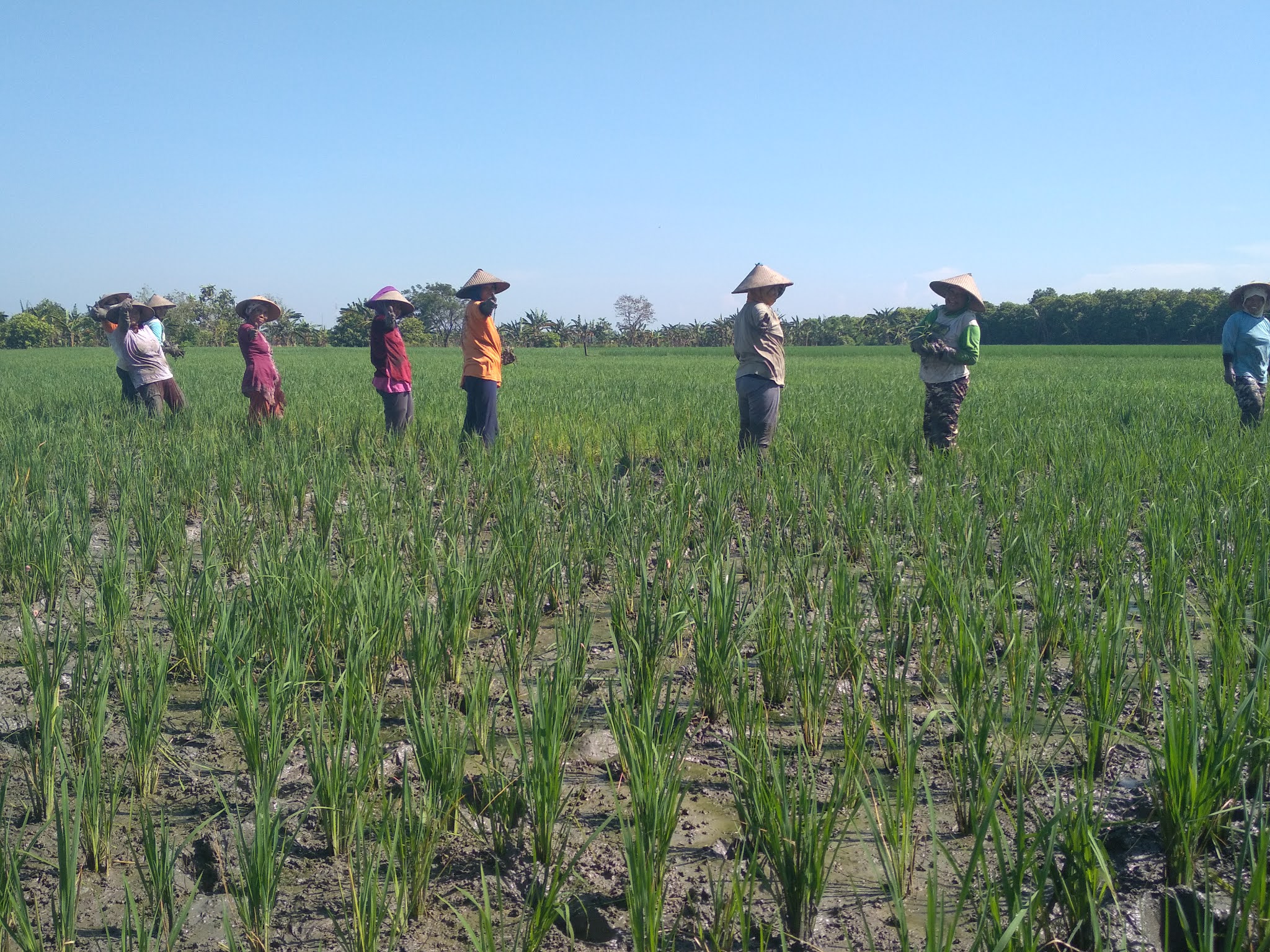 tenaga borong untuk merawat padi, dan 4 orang karyawan tetap yang bertugas