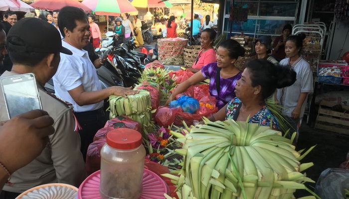 Cawagub Sudikerta mengunjungi Pasar Batukandik dan Pasar Gunung Agung, Denpasar, Rabu (21/2/2018). Drinya melakukan blusukan ke pasar-pasar tersebut sebagai bagian dari kampanye dan memantau stok persedian pangan, termasuk geliat ekonomi di masyarakat.