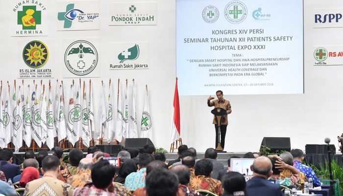 JAKARTA – Presiden Joko Widodo mengharapkan rumah sakit berbenah melakukan inovasi dalam menghadapi perubahan global dalam memberikan pelayanan kesehatan kepada masyarakat. Hal itu ditegaskan Jokowi saat membuka Kongres XIV Perhimpunan Rumah Sakit Seluruh Indonesia (PERSI) pada Rabu, 17 Oktober 2018, di JCC,