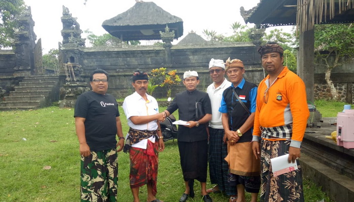 Meski sudah puluhan juta rupiah yang terkumpul, namun untuk riilnya baru diserahkan sebesar Rp 4.625.000 kepada Pengempon Pura, I Gusti Bagus Anom disaksikan Bendesa Adat Besakih, Mangku Widiarta, Camat Rendang, I Wayan Mastra