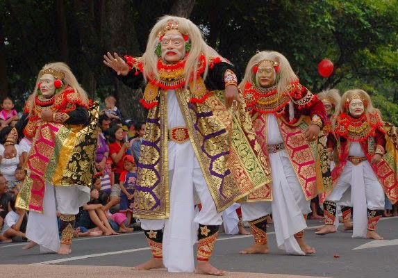 Tarian topengpun diperagakan di hadapan para Walikota beserta tamu undangan sebelum pawai budaya melepas matahari 2014.
