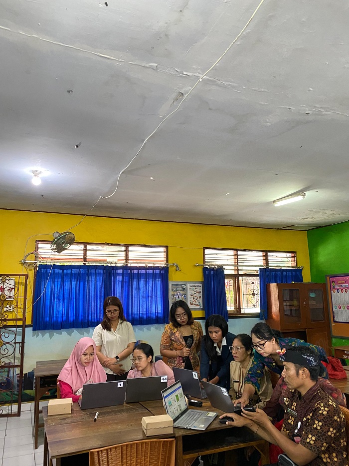 Kegiatan PkM berlangsung pada 22-24 Oktober 2025 ini berfokus pada peningkatan keterampilan guru. Para guru diberikan pelatihan pembuatan media edukatif berbasis Canva, memungkinkan mereka menciptakan poster visual yang menarik.