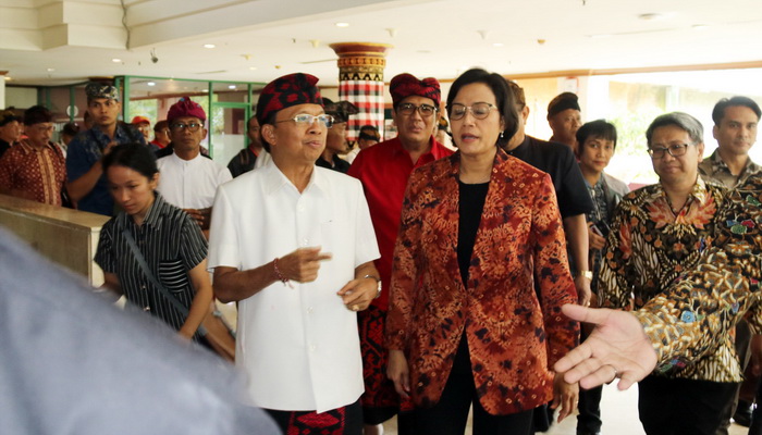 Gubernur Bali I Wayan Koster saat mendampingi Menteri Keuangan Sri Mulyani |