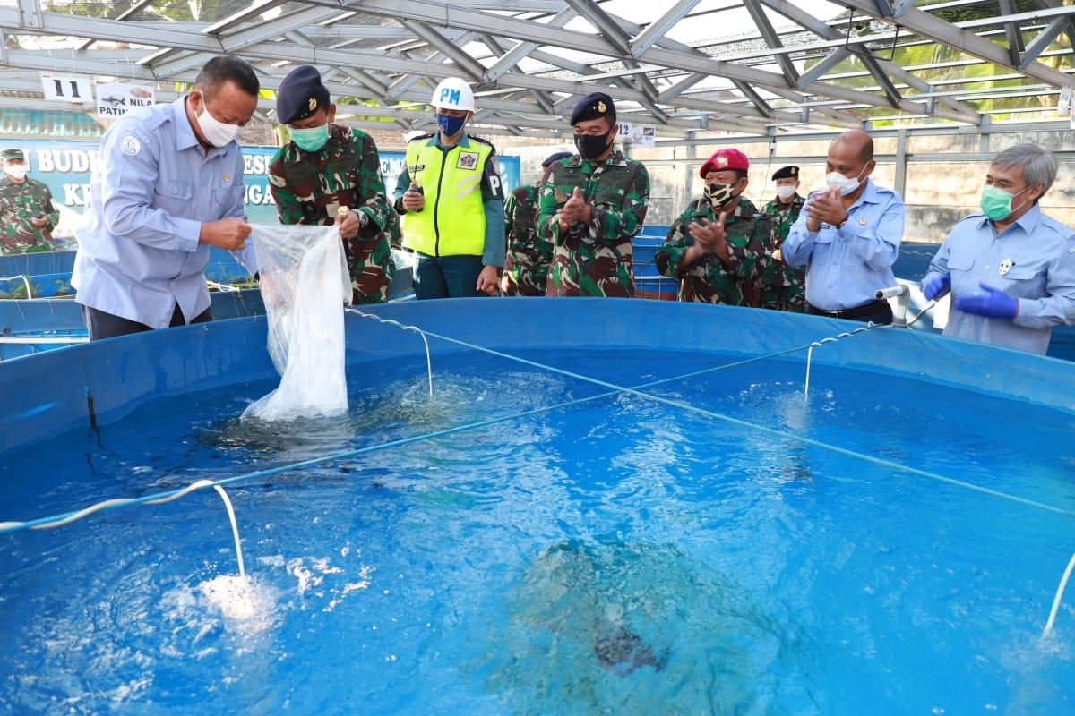 Dukungan yang dimaksud berupa pemberian benih ikan bandeng untuk kolam-kolam bioflok yang ada di Seskoal.