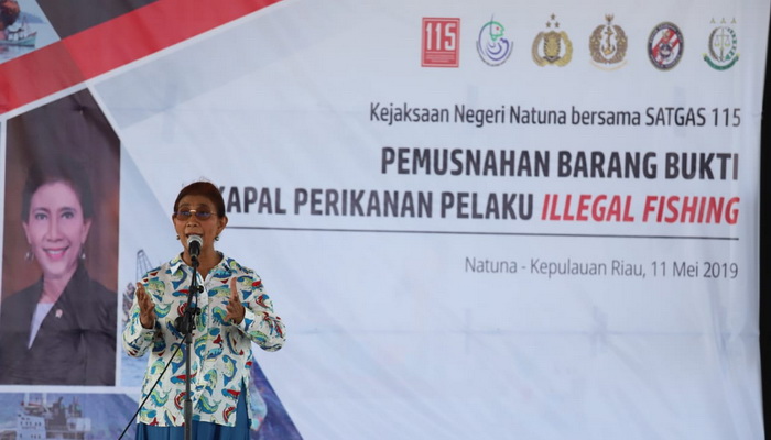 Natuna – Menteri Kelautan dan Perikanan (KKP) Susi Pudjiastuti menegaskan langkah tegas dengan menenggelamkan kapal ikan asing ilegal merupakan cara terbaik dalam menjaga kedaulatan laut Indonesia.