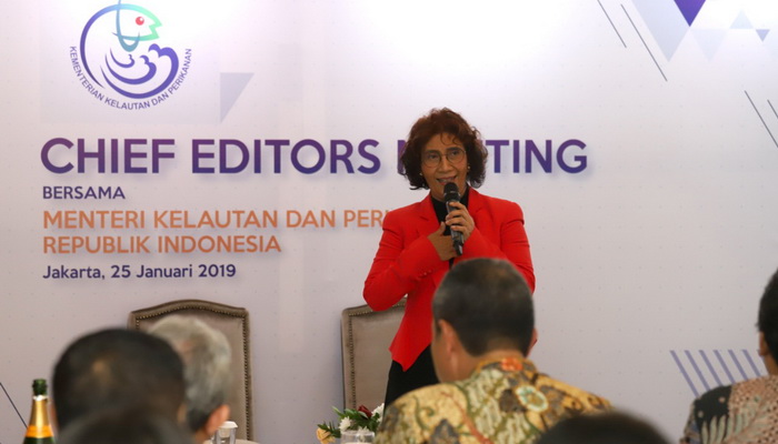 Menteri Susi menyampaikan hal itu dalam kegiatan Chief Editors Meeting di Kantor Kementerian Kelautan dan Perikanan (KKP), Jakarta Pusat, Jumat 25/1) malam. Oleh karena itu, ia mengatakan, ikan menjadi komoditas penting dalam mempersiapkan perang ini, baik itu ikan hasil tangkapan laut atau perairan lainnya maupun hasil budidaya.