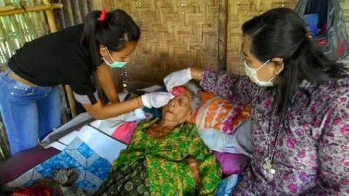 Nenek Wineng ini hidupnya penuh penderitaan. Wajahnya penuh luka basah dan terus melebar, membuat mata kanannya buta.