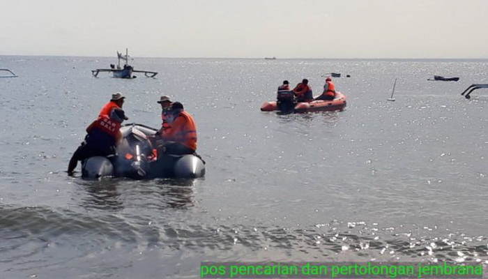| Tim SAR Gabungan melakukan pencarian terhadap nelayan yang hilang di Pantai Melaya/basarnas bali |