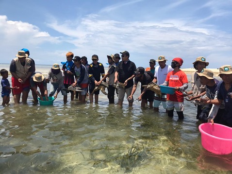 warga Pulau Barrang Caddi. Pelepasliaran tersebut dilakukan di pantai sisi
