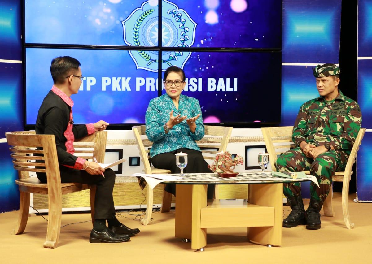 Denpasar – Ketua Tim Pengerak PKK Provinsi Bali Ny. Putri Suastini Koster mengajak para orangtua untuk menanamkan semangat nasionalisme sejak dini pada putra putri mereka. Ajakan tersebut disampaikannya saat menjadi narasumber pada pengambilan siaran tunda Dialog Perempuan Bali Bicara di Studio Bali TV, Jumat (7/8/2020). Dialog yang digelar dalam nuansa peringatan HUT ke-75 Kemerdekaan RI ini mengusung tema khusus “Membangun Karakter dan Kepribadian Anak Dalam Mempertahankan NKRI”.
