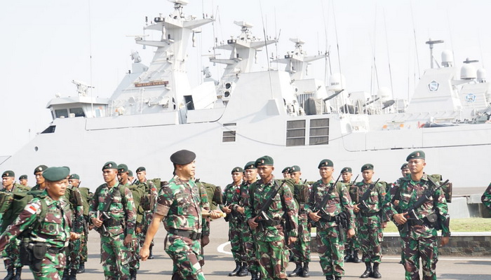 SURABAYA – Sebanyak 450 personil Satgas Yonif Raider 500/Sikatan, dalam rangka Purna Tugas Operasi di RI-PNG Sektor Selatan TA. 2018 tiba dengan selamat di Dermaga Madura Koarmada II Ujung Surabaya, Rabu (26/9/2018).