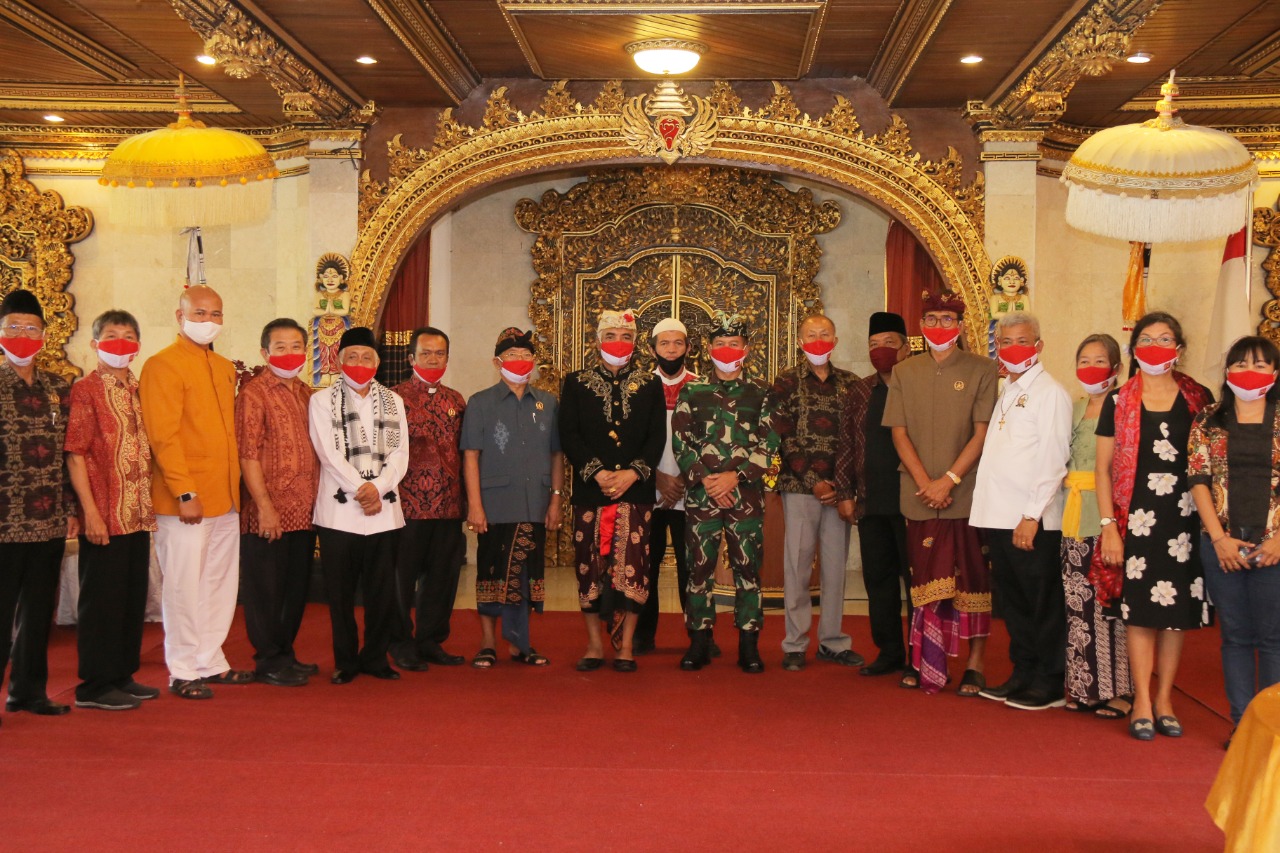 Selanjutnya, di Puri Den Bencingah, Pangdam disambut Ketua Forum Kerukunan Antar Umat Beragama (FKAUB) Provinsi Bali Ida Penglingsir Agung Putra Sukahet yang sekaligus juga sebagai Ketua Asosiasi FKAUB se Indonesia dan Pendesa Agung Majelis Desa Adat Provinsi Bali beserta para tokoh pimpinan masing-masing Lembaga Umat.