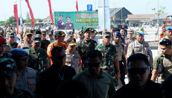 Personel TNI-Polri yang melaksanakan pengamanan arus mudik, harus mewaspadai beberapa titik kemacetan di sepanjang jalan tol tersebut,” tandas Panglima TNI diamini Kapolri saat memberikan arahan kepada personel TNI – Polri di Rest Area 575, Sabtu (1/6/2019).