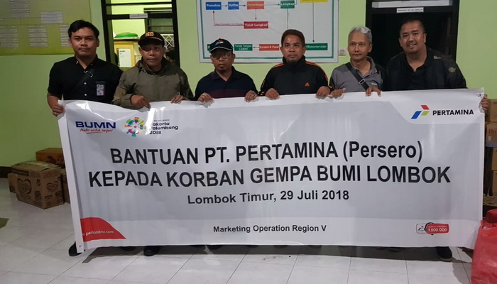 LOMBOK– PT Pertamina (Persero) Marketing Operation Region V melakukan peninjauan ke korban bencana gempa 6,4 SR di Kecamatan Sembalun Lombok Timur untuk menyalurkan bantuan.