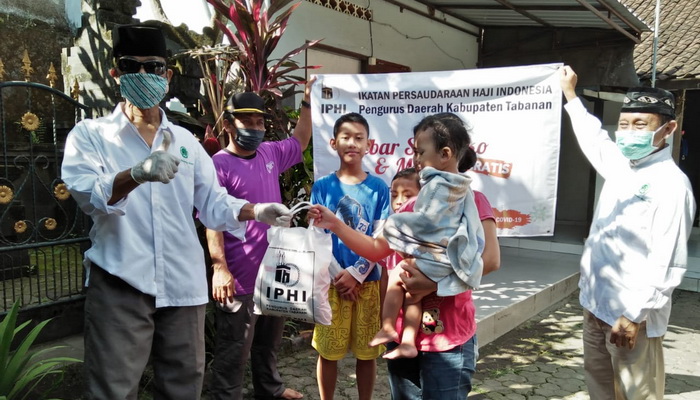 Tabanan – Pengurus Daerah (PD) Ikatan Persaudaraan Haji Indonesia (IPHI) Kabupaten Tabanan, Bali menggelar acara bakti sosial bagi-bagi 300 paket sembako dan masker gratis kepada para korban terdampak Covid-19 yang ada di tujuh kecamatan di Kabupaten Tabana, Bali, Minggu (3/5/2020).