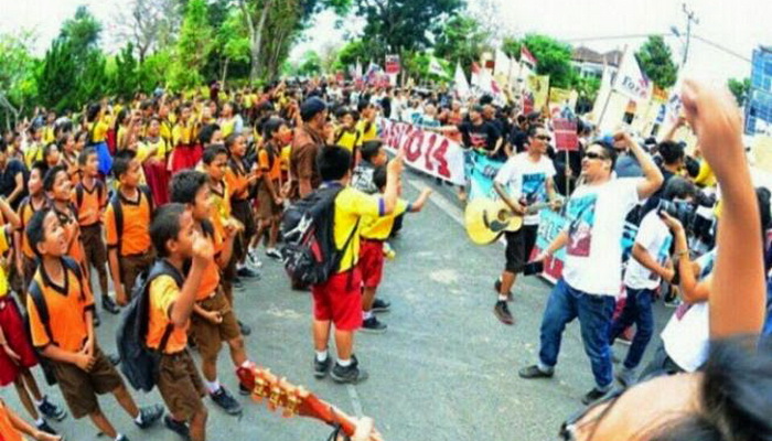 Saat aksi damai berlansung, para aktivis itu mendapat kejutan dengan kehadiran para siswa sekolah dasar (SD) yang tengah berkunjung ke monumen Bajra Sandhi. Tanpa dikomando mereka langsung mendekati barisan ForBALI. Mereka turut menyanyikan lagu Bali Tolak Reklamasi saat massa ForBALI berorasi di depan monumen.